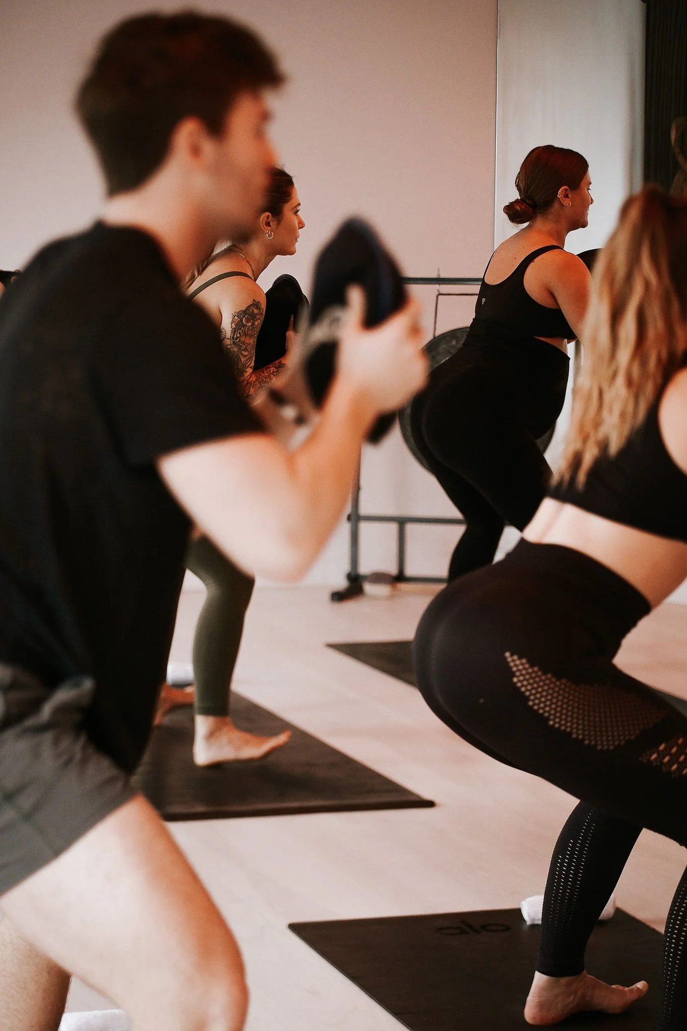 The class is energetic yet accessible. Your instructor will offer options for different experience levels so you can explore your strength without pressure. The environment is welcoming, grounding, and designed to help you feel confident and connected throughout your practice.